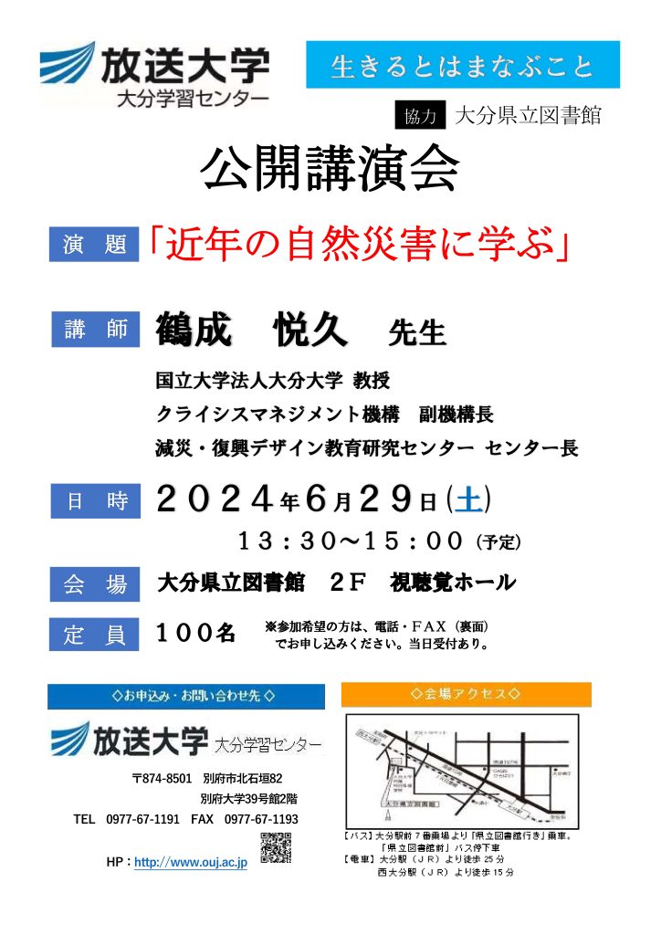 大分県立図書館と放送大学大分学習センターが連携し、公開講演会を開催します。