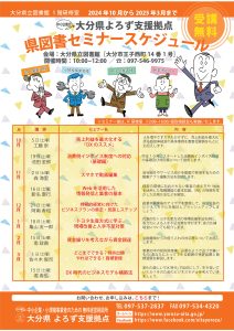県立図書館では、大分県よろず支援拠点のご協力をいただき、大分県内の起業・創業者を支援するため、土曜日に出張セミナー・個別相談会を開催します。