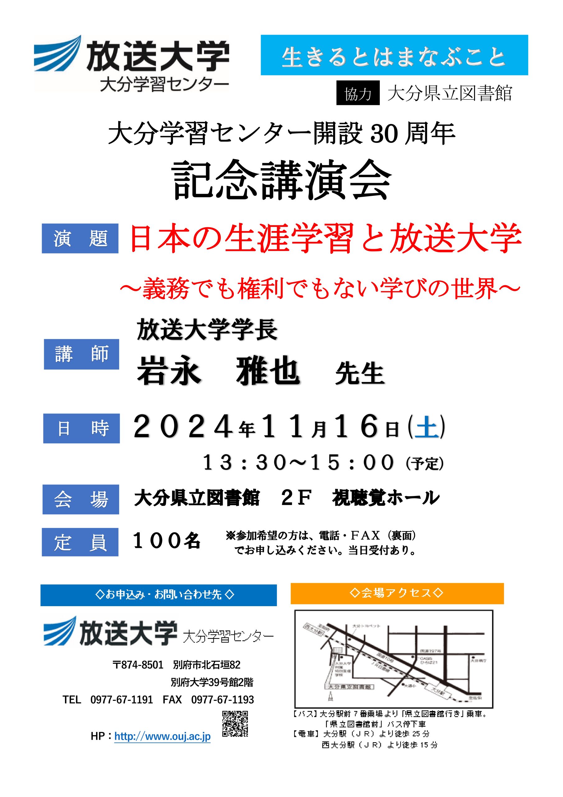 今回は放送大学大分学習センター開設30周年記念講演会となっております。